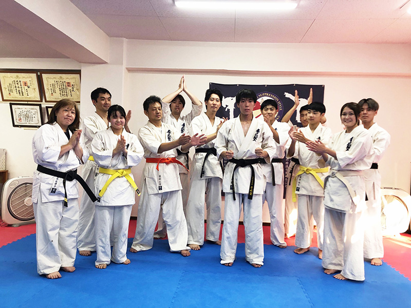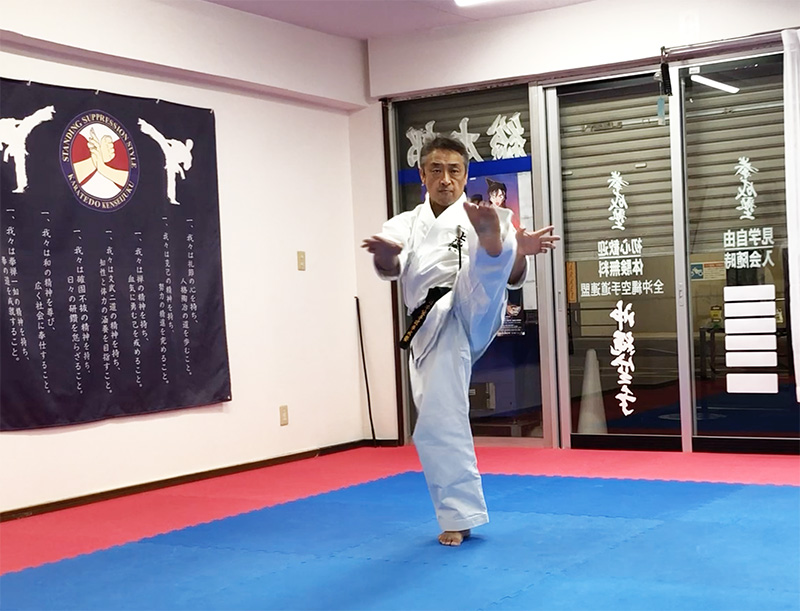 基礎運動、ミット打ち、型稽古などが中心のほかに護身術なども行い、運動不足とストレス解消を目的に無理のない範囲で行います。